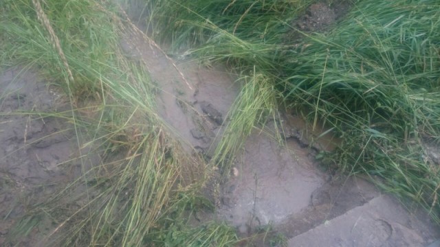 Schlamm auf Straße, Mehna (Rodameuchel) - 13.06.2015, 18:50 Uhr